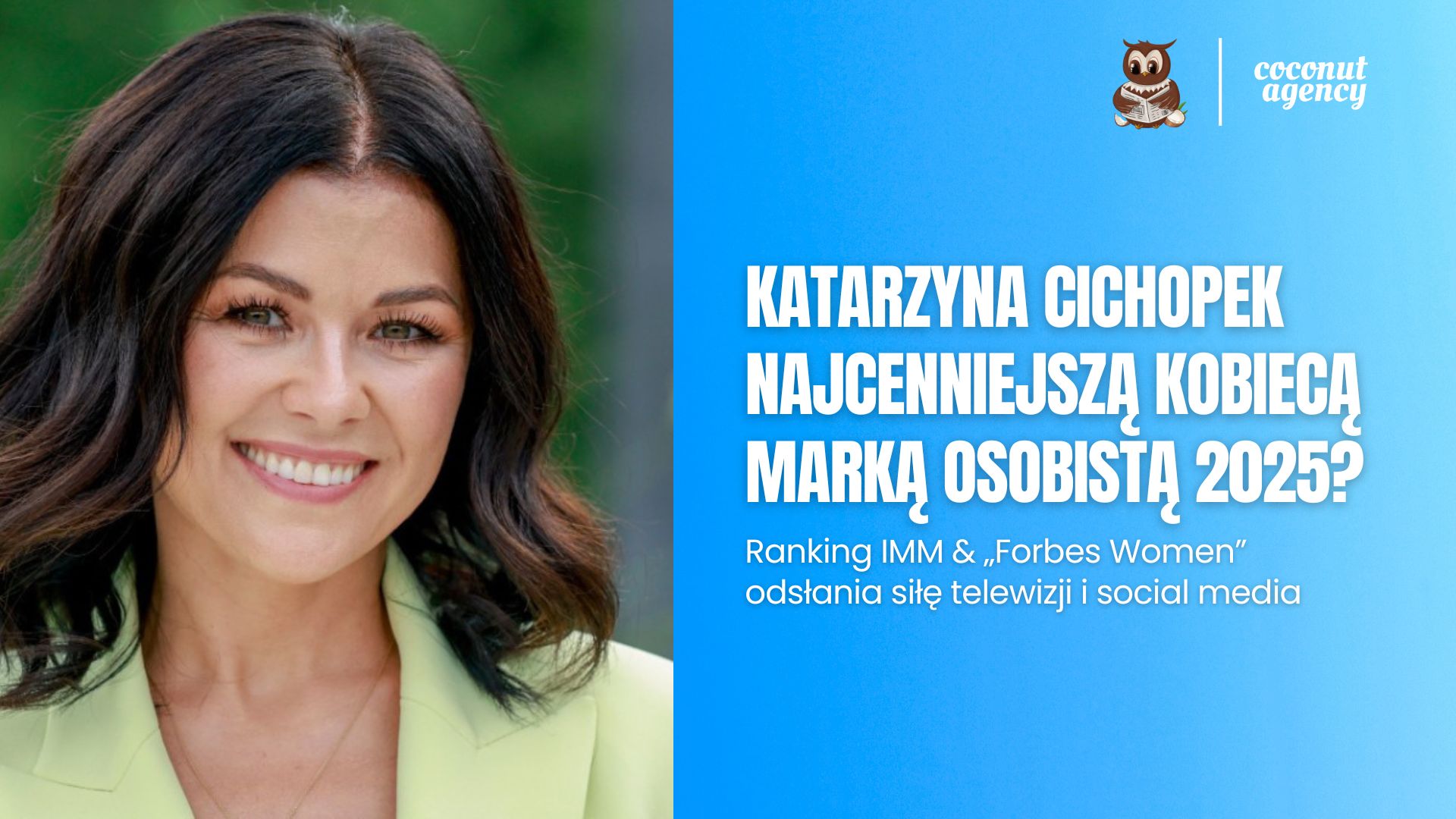 Instytut Monitorowania Mediów (IMM) wraz z magazynem „Forbes Women” opublikował najnowszą edycję zestawienia „100 Najcenniejszych Kobiecych Marek Osobistych w Polsce”. Liderką 2025 w kategorii media, kultura, lifestyle została Katarzyna Cichopek, której wartość ekspozycji medialnej (AVE) oszacowano na 247,8 mln zł.